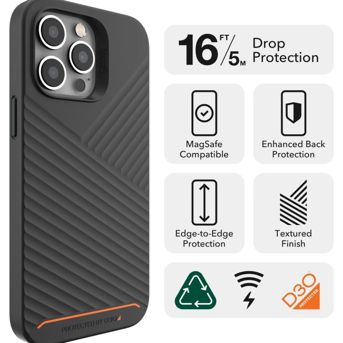 The MagSafe compatible Denali Snap provides serious protection with a no-slip grip and a textured finish. This durable, hardback case is reinforced with D3O that surrounds the frame and back plate for 16ft (5m) of drop protection.*