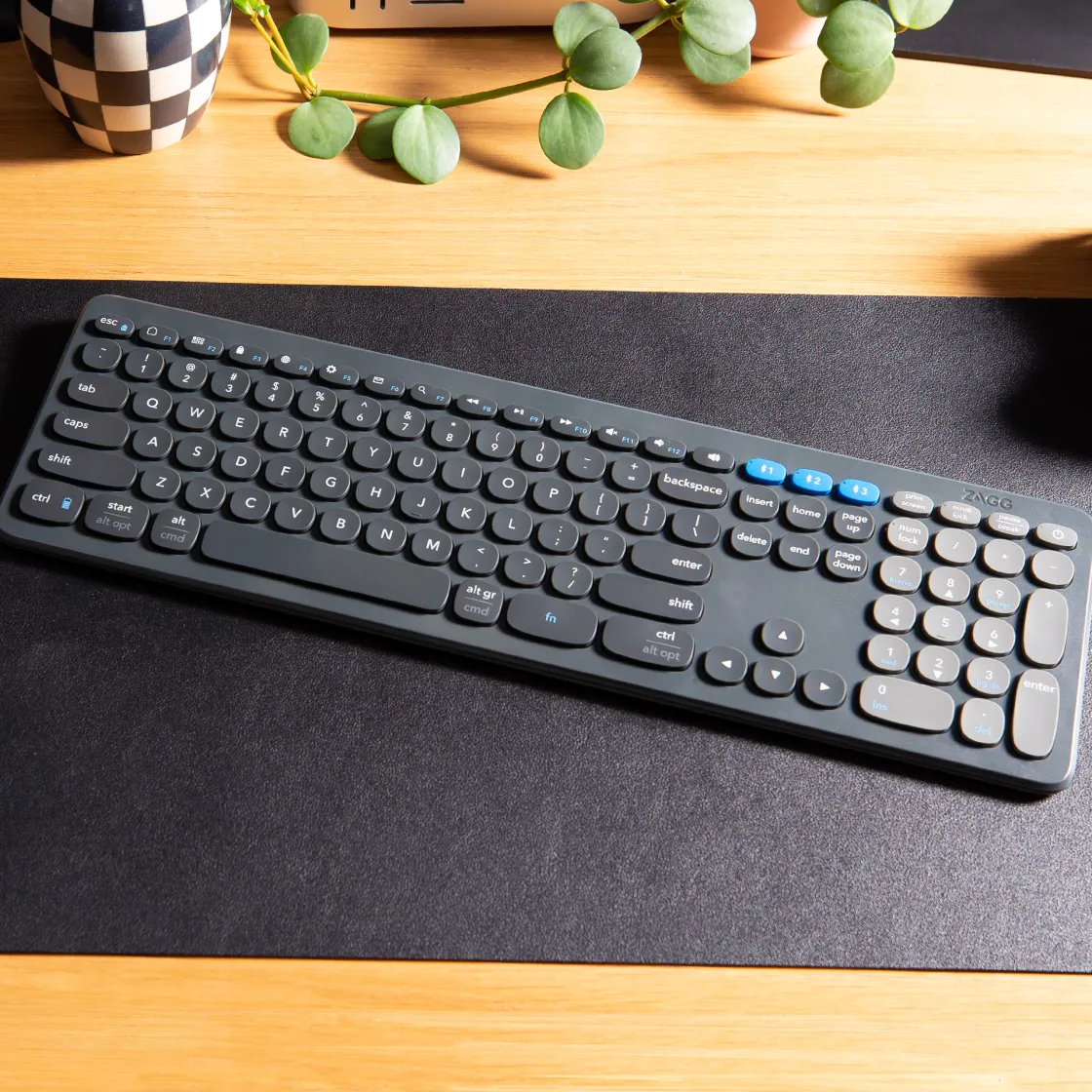 Full-Size Desktop Keyboard: Type comfortably for extended periods of time. ZAGG Pro Keyboard 17 is a 108-key, full-sized desktop keyboard.