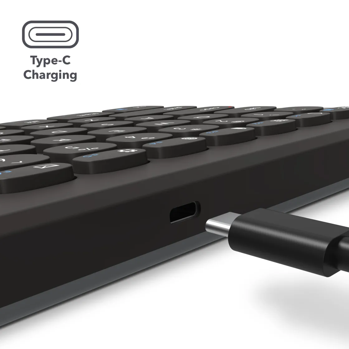 Wireless Charging: No cables needed! You can simply place the Pro Keyboard 17 on a Qi-compatible wireless charging pad. Or, if you prefer wired charging, use the Type-C charging cable included in the package.