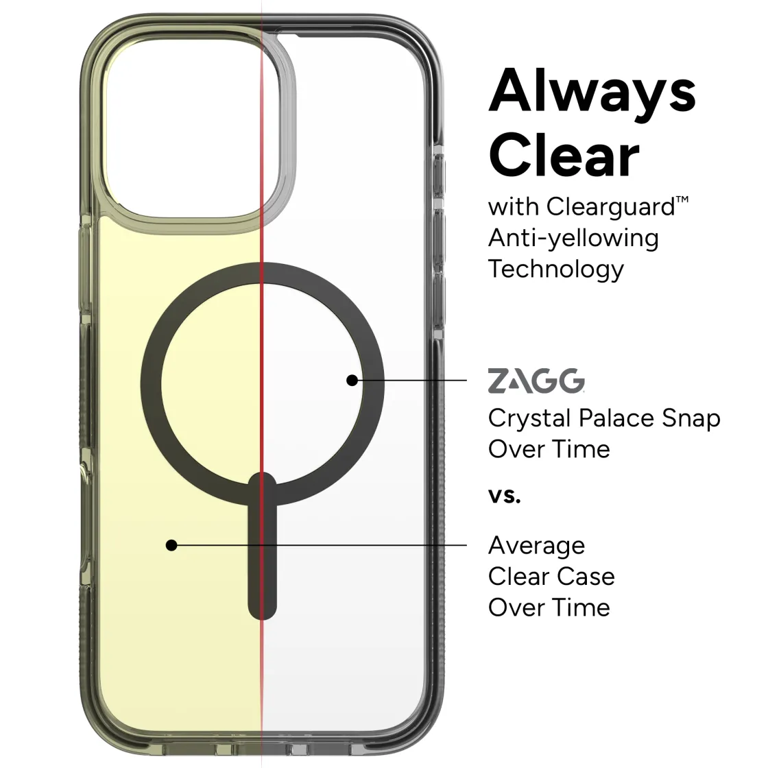 Trend-Setting Colors: This transparent case has pops of color surrounding the case, the camera ring, and the snap magnet.
